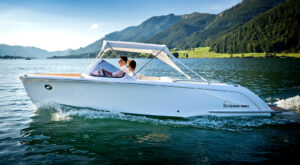 A top-class electro-yacht: Timeless, elegant design is blended with high-performance technology along all 7 metres of this craft — to produce a top speed of 53 km/h.